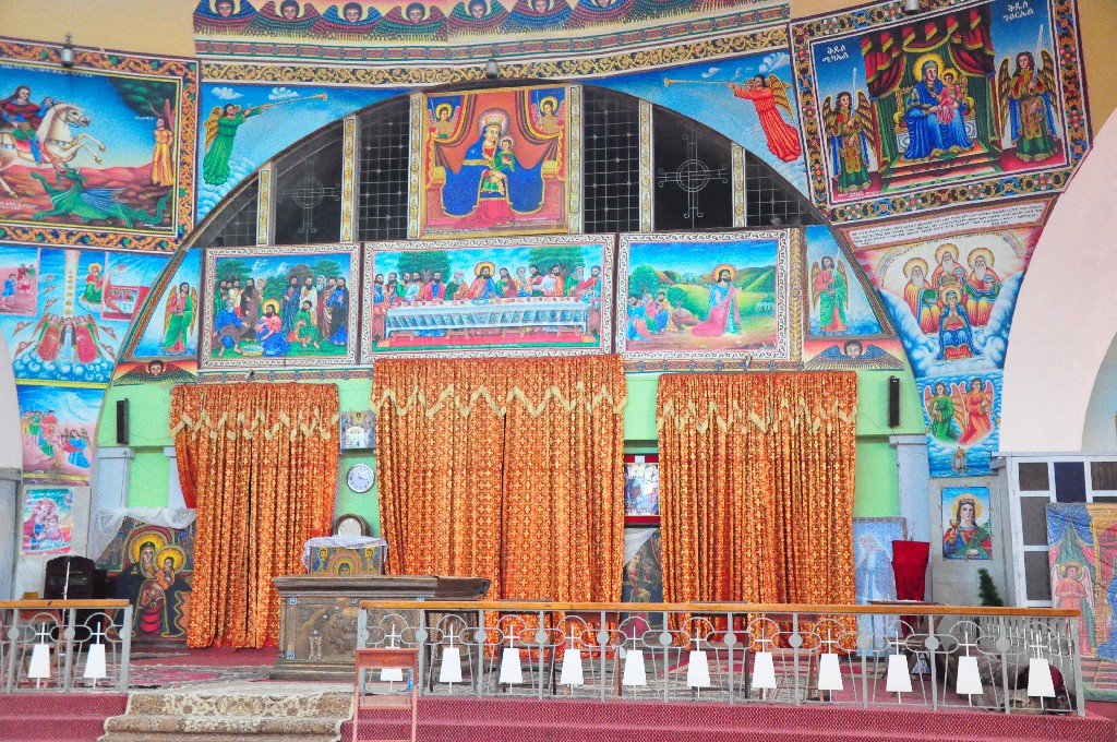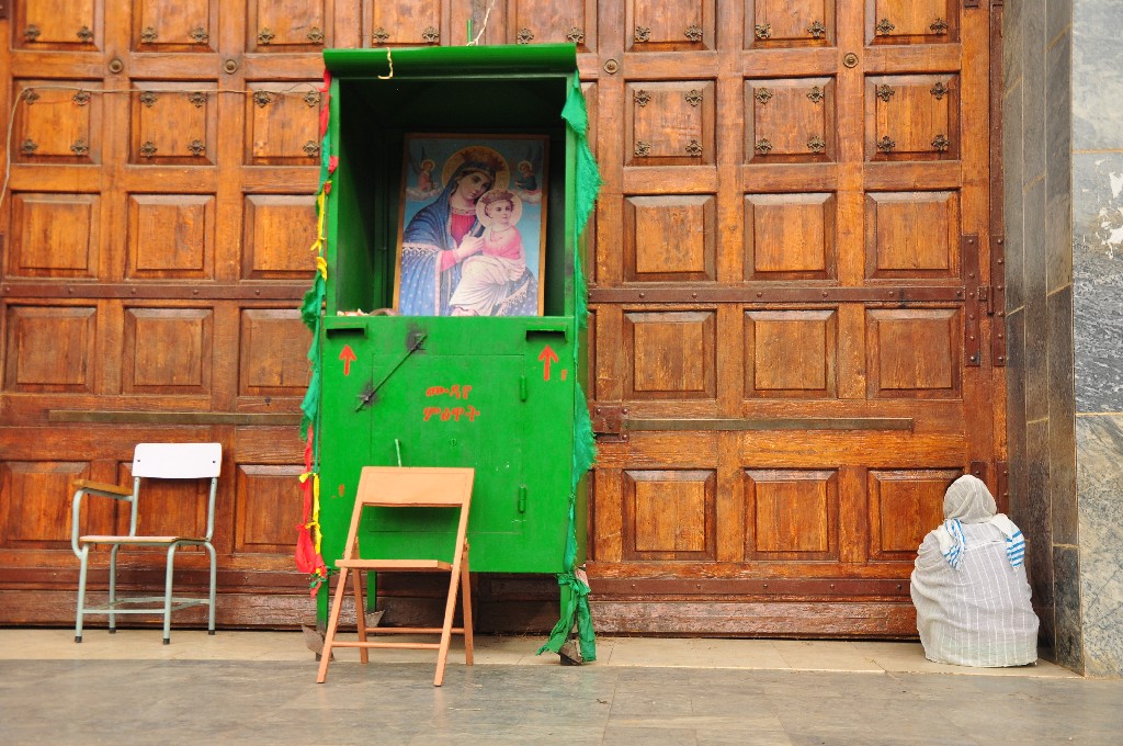 It’s then that thousands of wide-eyed hopeful pilgrims gather in the piazza – a legacy of Italy’s occupation of Ethiopia in the 1930s (though Ethiopia was never colonised) – in front of the church, beneath the gaze of the stone-carved obelisks, for a glance at its draped outline that’s necklaced by guards and proceeds to the beat of drums.