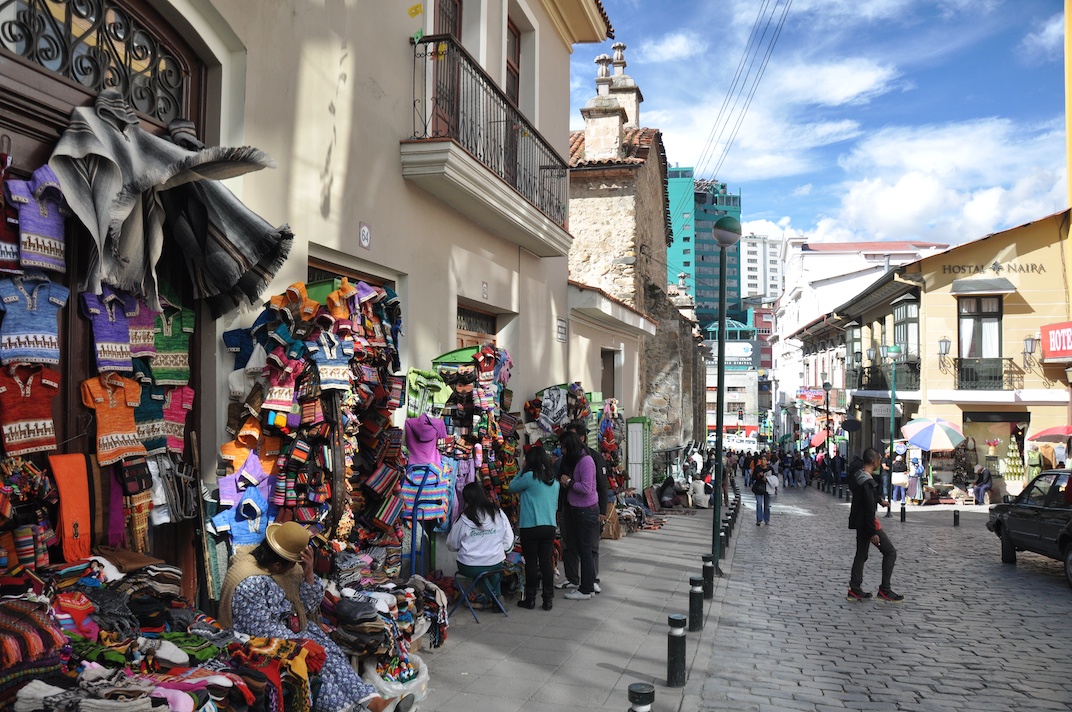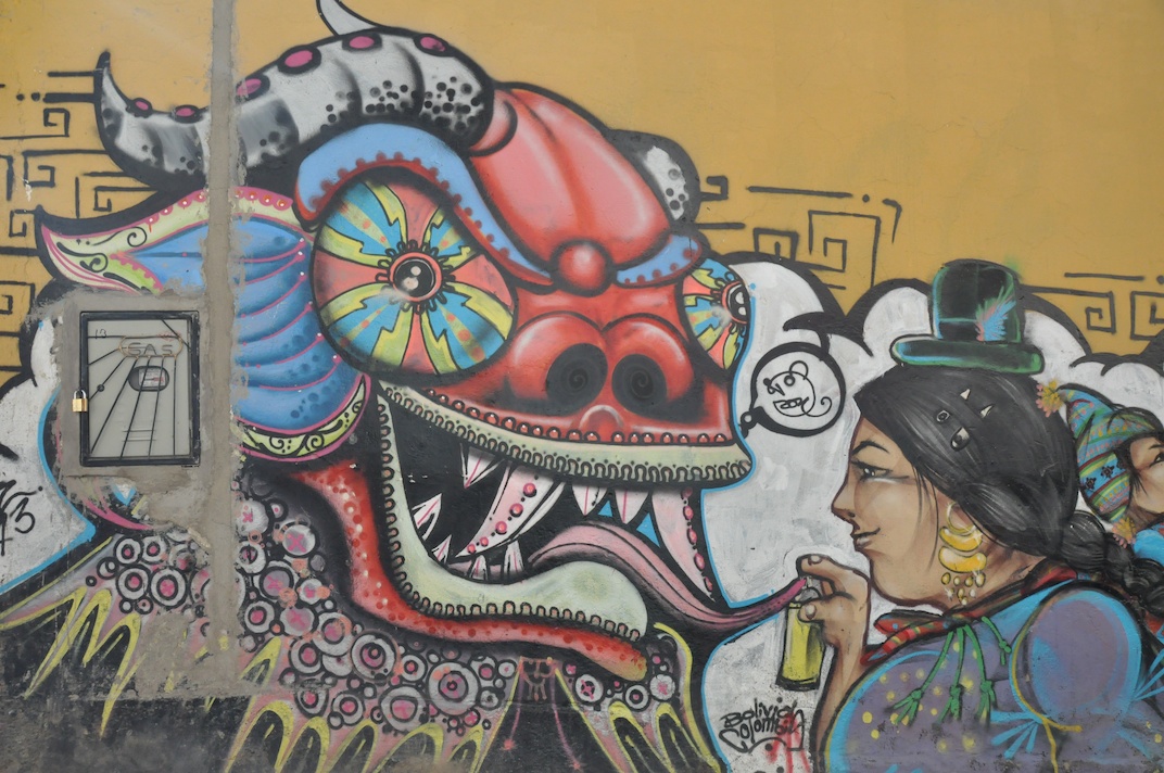 The Witches’ Market has become quite a touristy area in recent year due to the many curious tourists fascinated by these age-old traditions. The market (which is actually found along Calle Jiminez and Linares) is interspersed with souvenir shops and it’s a popular place to buy vibrant Bolivian textiles, hand-crafted jewellery and clothing, leather handbags, jerseys made from alpaca and llama wool, figurines and other souvenirs. The graffiti covered walls complement the rainbow-coloured houses and set the tone for the rest of our trip.