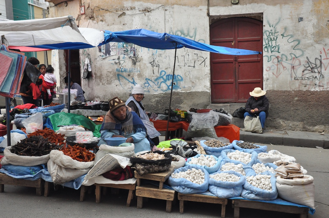 Bring your camera, haggling skills and an open mind when you visit the Witches’ Market in La Paz (also called Mercado de las Brujas). The name derives from the many stalls mostly run by elderly women, who sell homemade remedies made from herbs and plants, soapstone figurines, charms, amulets and ‘magical medicinal potions’. But it’s the dried llama fetuses that garner the most attention. As part of an ancient Aymara ritual they are burned along with incense, candles, fake paper money, and los misterios sweets in the shape of hearts, families and even Catholic saints whose powers are invoked. Each month, especially during August, or at the start of an important undertaking an offering is made to the benevolent deity Pachamama (mother nature) to ask for good luck, health, happiness and prosperity. She is an important aspect in the lives of locals. Even those whose ancestors converted to Christianity after the Spanish colonised the region in the 16th century, still believe in her power over the mortal world and often practice both Christianity alongside Aymara traditions.