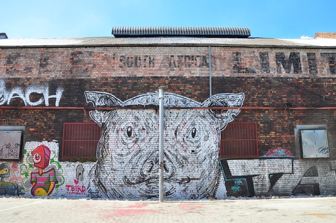Inner-city Johannesburg is an open-air gallery and international street-art destination – and it’s right here in our backyard. Graffiti writers work by the light of streetlamps and conceal their identities because of strict by-laws that govern vandalism to private and public property. Yet the walls of inner-city Joburg – especially Newtown, Maboneng and Jeppestown – are a palimpsestic, open-air street gallery, with playful and poignant masterpieces that comment on the economic, political and social realities of life in the City of Gold. Some have remained intact for years, attracting local and international graffiti writers, and the city is at the top end of worldwide graffiti destinations to visit.