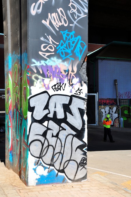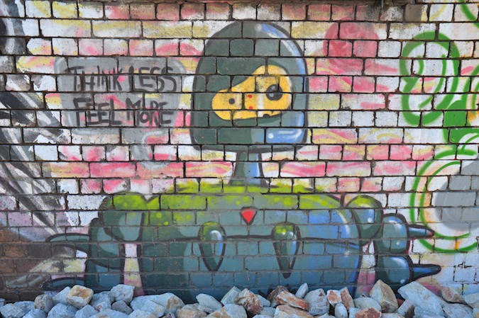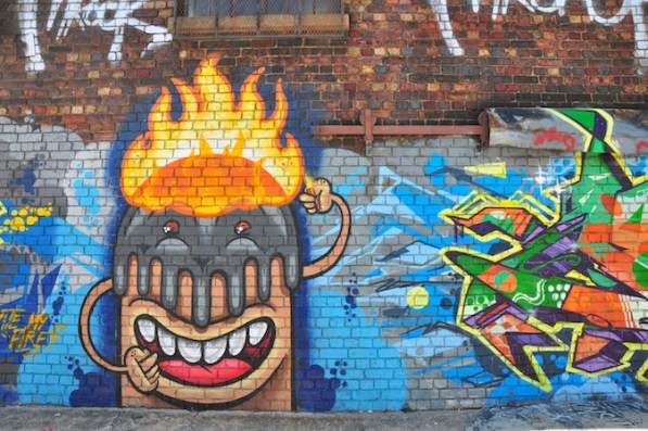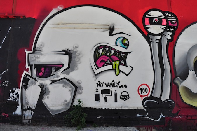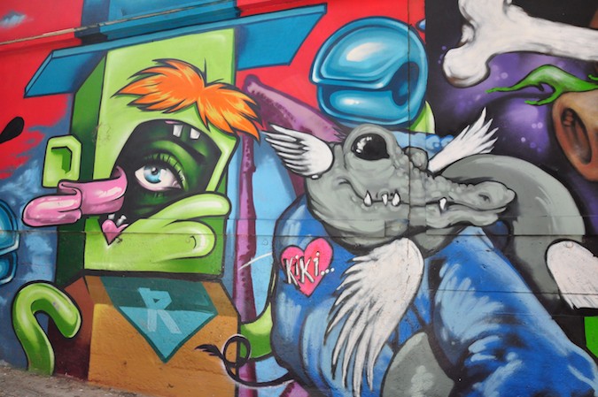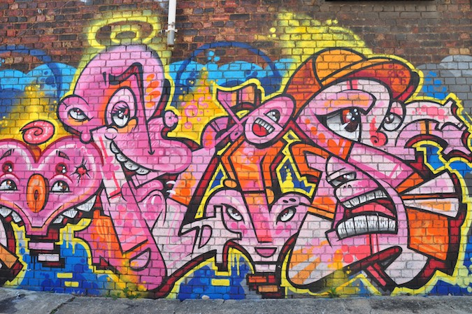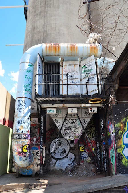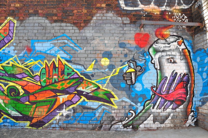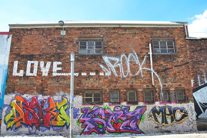 Jo points to a section opposite Price’s Candles Factory, comparing it to a street-artist’s guestbook. It’s a bright hodgepodge covered in tags, painted characters and wheat-paste posters, layer upon layer of past (and present) experiences. Who knows, perhaps after one of Past Experiences’ graffiti workshops, you might find my tag here soon, too.