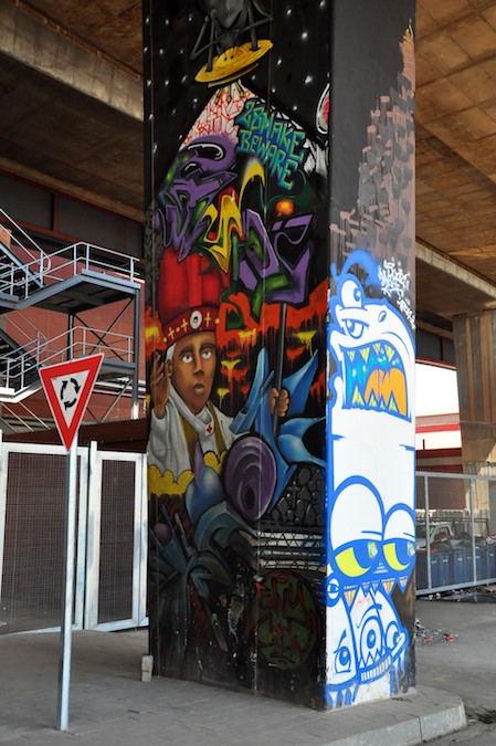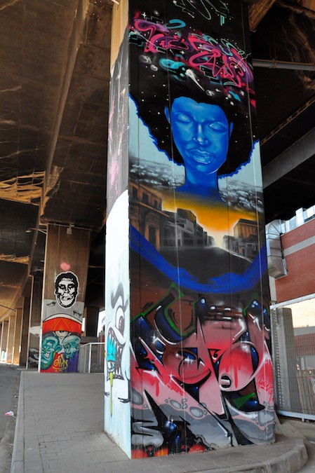 Joburg’s graffiti by-laws are not as strict as those in other cities such as Cape Town and Durban. In the Mother City you can be fined R15 000 for a first offence or three months’ imprisonment, with charges doubling for a second offence. While a Joburg anti-graffiti rapid-response unit has been rumoured, neither Jo nor any of the graffiti writers I spoke to have encountered it, although masterpieces have been removed (or buffed). “This place has got bigger problems to worry about than pretty pictures on the walls,” says Mars.