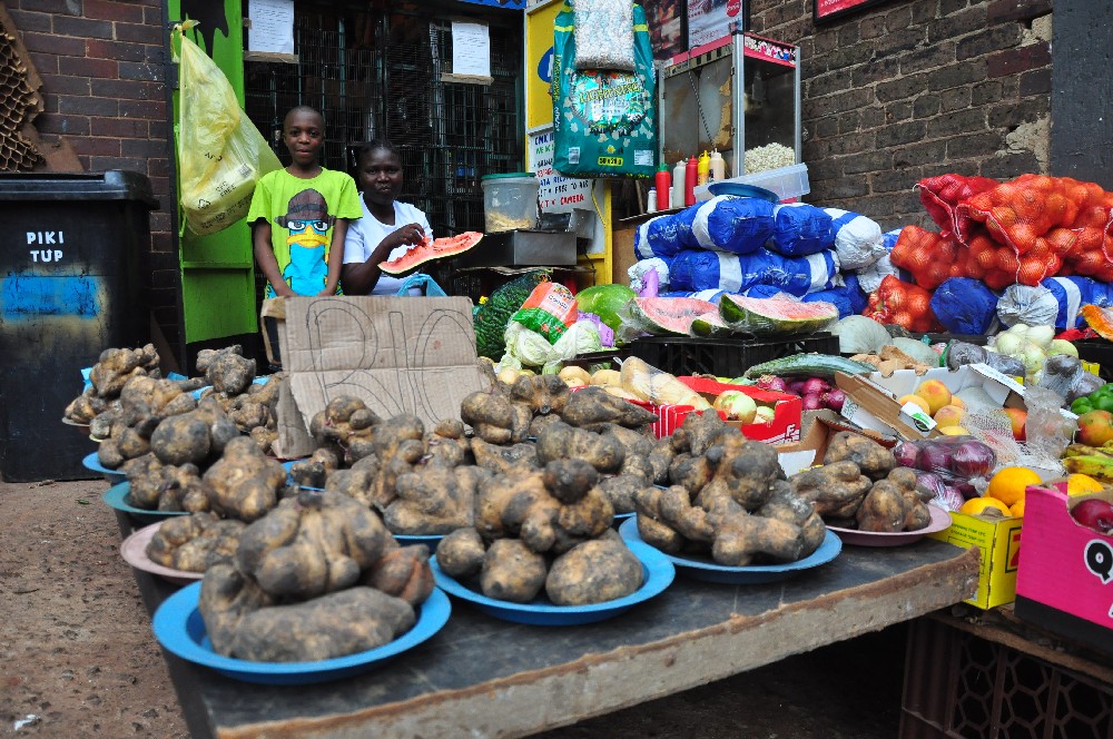 After a starter of beef, mielie pap and an array of salads, we dance to a live rendition of Miriam Makeba’s ‘Pata Pata’ at Ekhaya And All That Jazz. Then we slowly saunter through Yeoville Market, as our guides explain the changing landscape and citizenry of the city. Here we meet a young Senegalese shopkeeper, an Ethiopian mama selling fabrics and a Nigerian man watching a church sermon with his daughter. Mopani worms are sold alongside dried fish hung on a string, cassava roots, stick-on nails and human hair extensions. You can buy just about anything here.